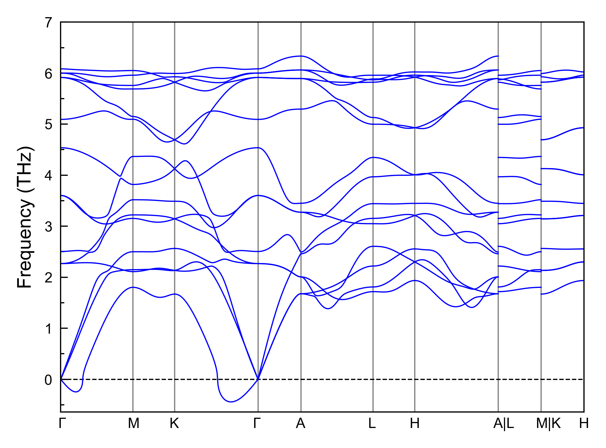 | Crystal structure | Band structure | Phonon dispersion |
